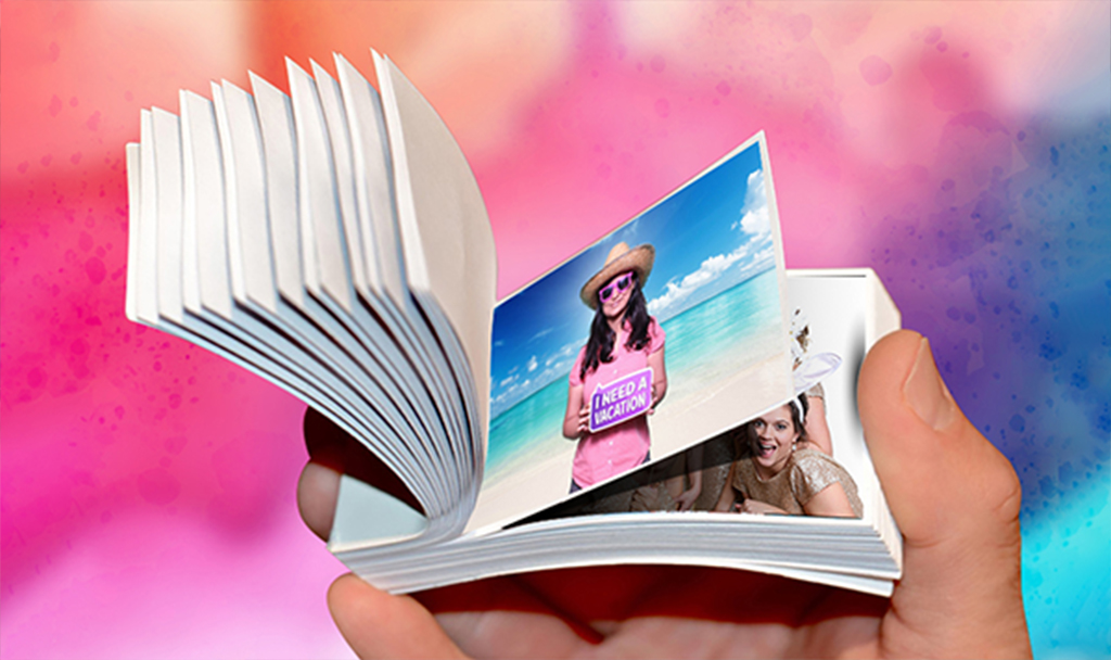 If you love Flipbooks and are looking for a fresh and new twist to the classic, look no further. Our Green Screen Flipbooks turn it up a notch by adding in custom backgrounds for your guests to choose from and create a totally unique flipbook. These backgrounds can be images you choose or can be a custom background we create for you with your logo or custom colors!